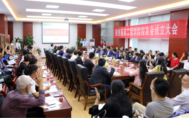 工作人员宣读了《陕西服装工程学院校友会章程》和第一届校友会领导机构组成人员建议名单。通过举手表决,参会人员一致通过《陕西服装工程学院校友会章程》和第一届校友会领导机构组成人员名单。刘明夫任校友会会长,刘继兵任校友会常务会长,苗宪、张文萱、刘博、张一鸣、黎睿泽、谷晨、刘西珍、胡忠智、白巧燕、朱嘉利、毕锦培、陈志斌任副会长,邵智勇任秘书长,董良超任副秘书长。