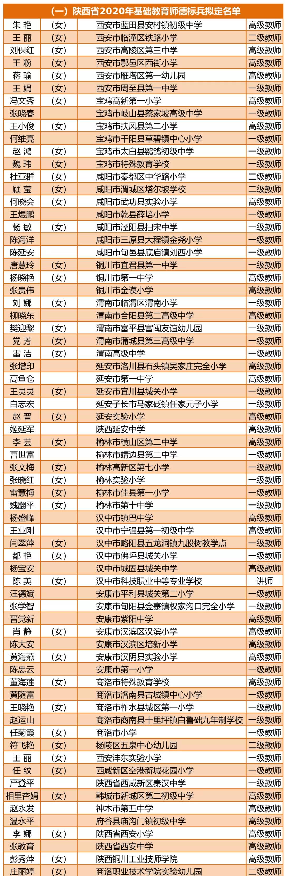 公告丨2020年陕西师德标兵和师德建设示范团队遴选名单公示