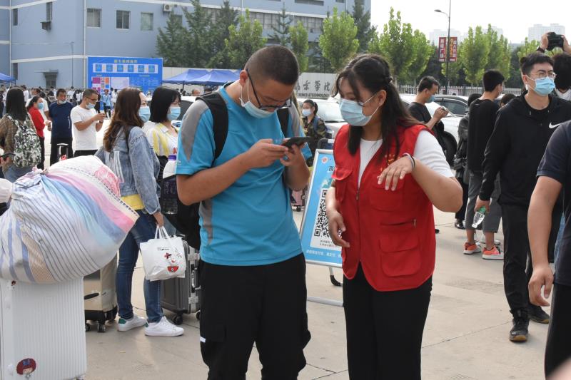 陕服新闻网讯(记者李文斌)9月14日是我校2020级本科新生报到第一天,陕服校园处处洋溢着喜庆欢乐祥和的气氛。数百名来自全国各地的新学子满怀喜悦入学报到。校园里虽然比往日热闹许多,但秩序井然,不见忙乱情景,疫情防控也很到位。