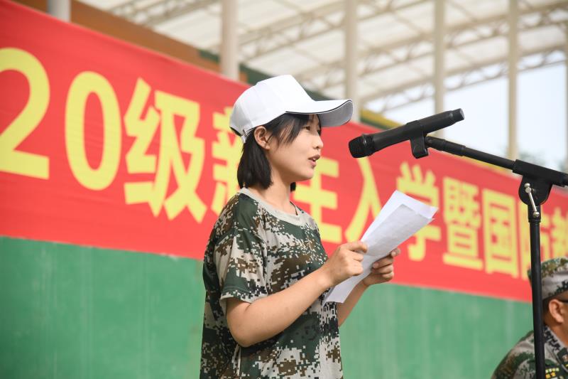 新生代表徐鑫,教官代表杨永善,辅导员代表汪潇分别作了表态发言。他们表示一定不辜负学校领导的期望,严守纪律,刻苦训练,恪尽职守,以饱满的热情,无比的努力,圆满完成此次军训任务。