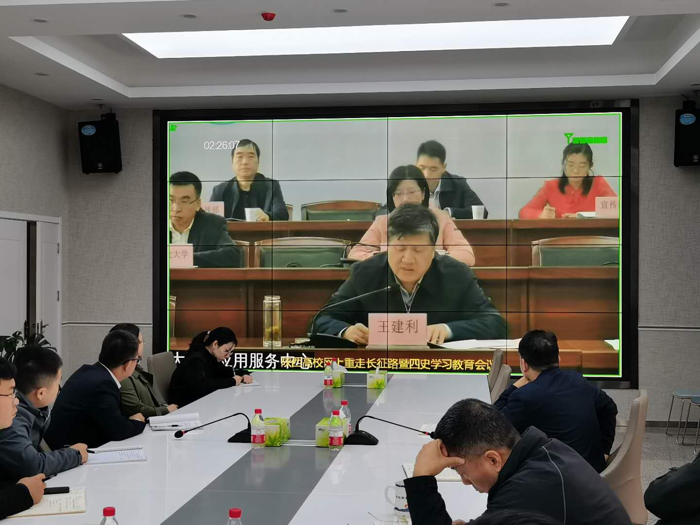 省委教育工委书记王建利出席会议并讲话,省委教育工委副书记陈乃霞领学习近平总书记关于“网上重走长征路”暨推动“四史”学习教育重要论述,省委教工委委员冀映秋主持会议。