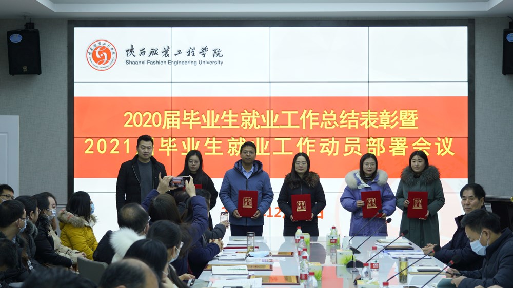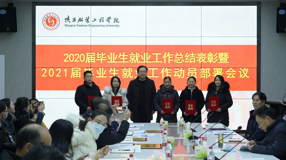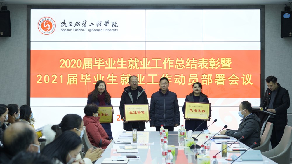 会议开始、首先刘继兵处长全面总结了2020届毕业生就业工作,肯定了成绩,分析了存在的问题,并提出今后工作的改进意见,同时宣读了“陕西服装工程学院关于表彰2020届就业工作先进集体和先进个人的决定”,大会对6个先进集体,23名先进个人进行了颁奖表彰。
