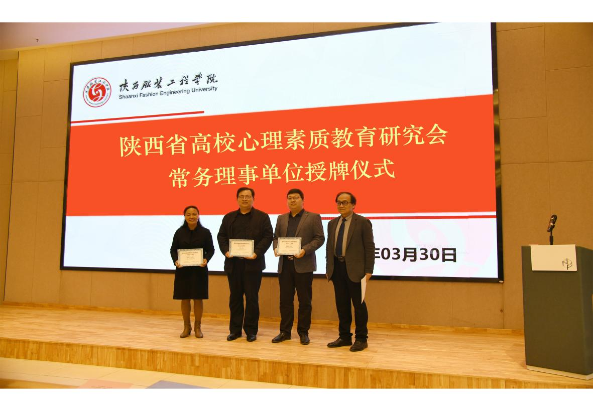 陕西省高校心理素质教育研究会会长郑林科教授宣读了陕西省高校心理素质教育研究会的批复文件,为我校授予了常务理事单位牌匾,并为常务理事、理事和会员颁发了聘任证书。