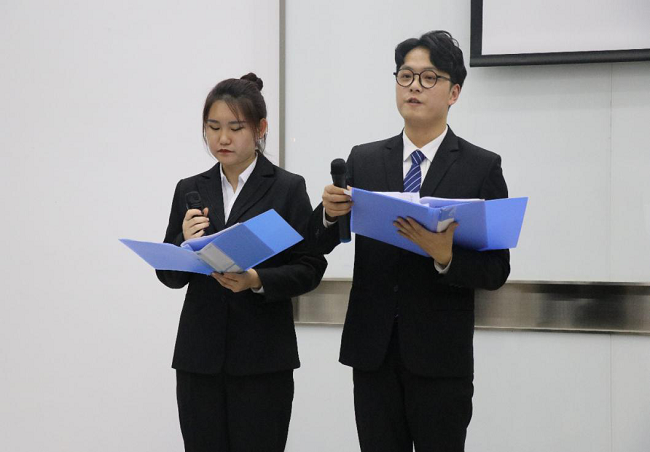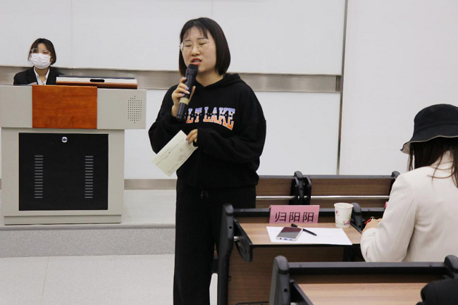比赛中,每位评委认真倾听,同时不断记录,为选手打分,每场结束都为同学及时打出分数。比赛进行到最后归阳阳老师为同学们上半场的活动表现指出了优缺点,表扬同学们活动情绪积极、参赛同学们能够认真对待比赛等等,同时指出参赛同学的不足之处,指出各别参赛选手仍然不能脱稿、比赛形式不严格等等问题,希望同学积极改正。最后杨越雯老师作为评委代表,为活动的圆满结束做出总结,肯定了学生会同学的辛勤付出,以及各位选手的认真努力,鼓励学生要多磨练自己,提高个人能力,同时预祝整个赛事活动圆满结束。