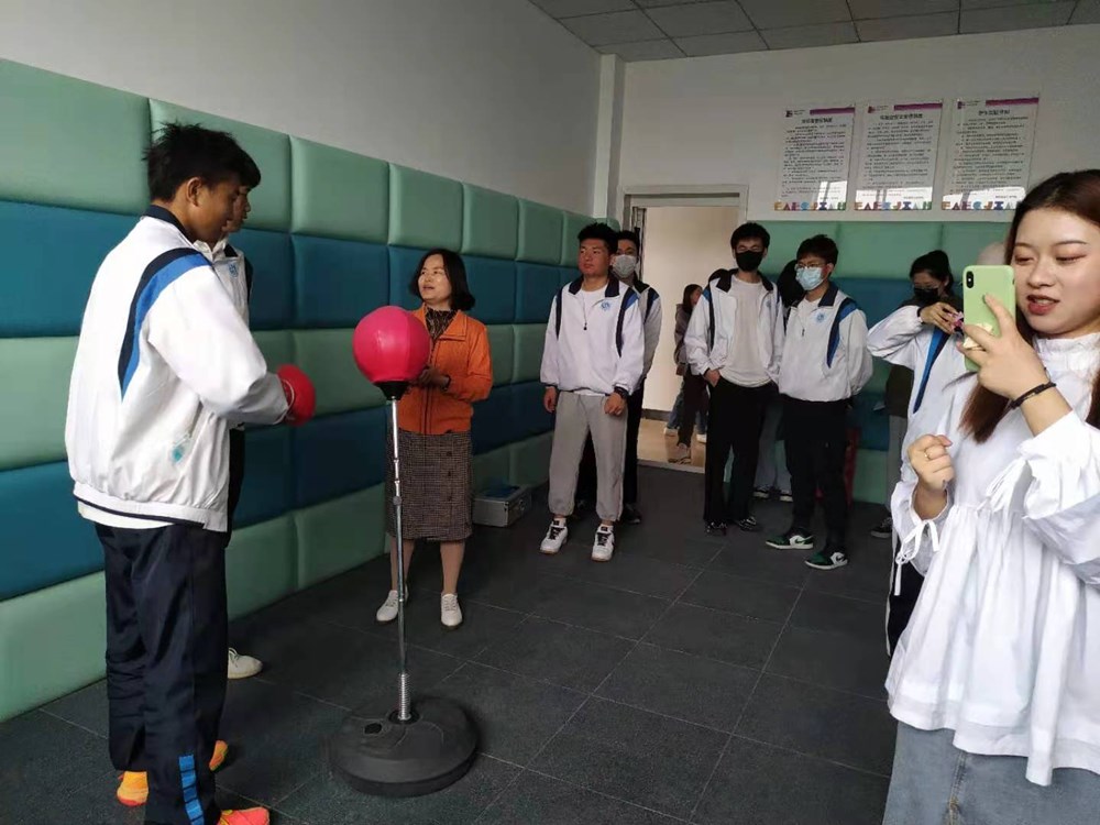心理咨询中心陈晓琳老师组织心理委员们参观了个体心理咨询室、音乐放松室、心理宣泄室、心理沙盘室。心理委员们在心理宣泄室进行了放松体验。 参观后,心理委员徐子阳同学结合班级实际情况进行了交流分享,李淼老师对各班心理委员提出了工作建议和期望,陈晓琳老师也与心理委员们进行了交流,给大家讲解了心理委员工作的方法。活动对学生心理健康知识的普及有很大的推动作用。 通过这次活动,心理委员们对心理咨询中心有了进一步的了解,对心理健康工作有了更加深入的认识,为他们今后更好地开展班级心理健康工作奠定了良好的基础。