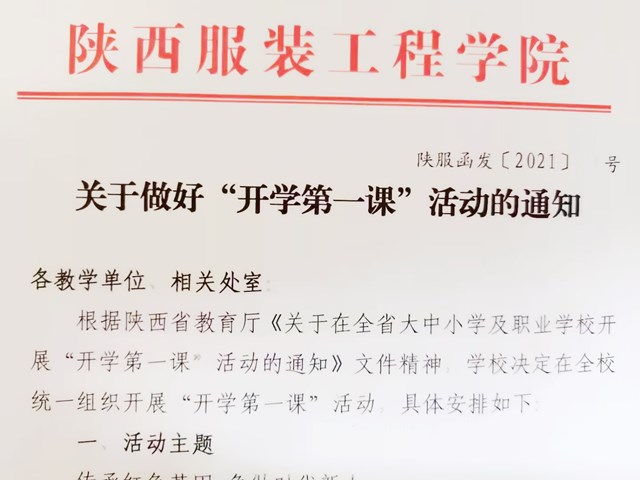 陕服新闻网讯(李文斌)9月1日,开学第一天,陕西服装工程学院万名师生共上“开学第一课”——思政大课,教育大学生听党话跟党走,“传承红色基因 争做时代新人”,为中华民族伟大复兴贡献力量。