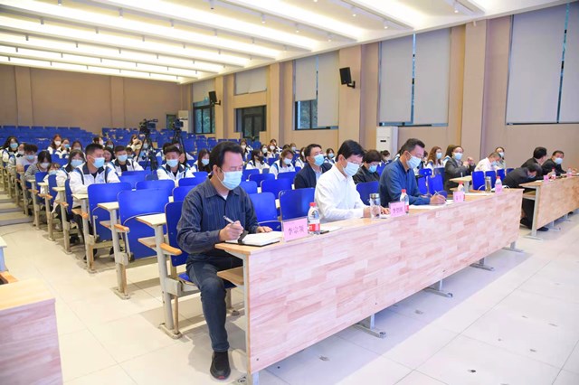 按疫情防控要求,每个教室不超百人,各教学单位按专业、班级组织了152个分课堂,全体师生在教室观看了直播。