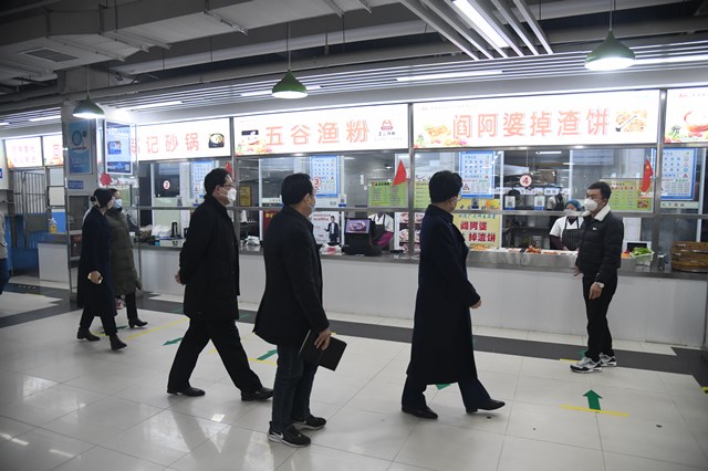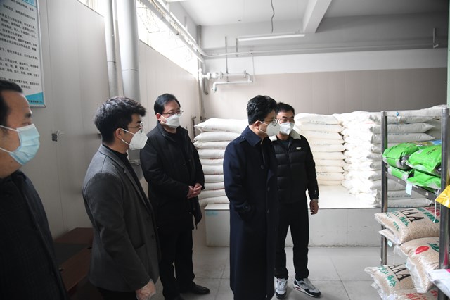 在学校第一餐厅,董事长向一线员工问好并祝贺新年快乐。检查了食品物资储备仓库和操作间,强调一定要想方设法保证师生吃饭问题,并要保证质量。就向沣西地区隔离酒店送餐问题,要求一定要当政治任务做到尽善尽美。