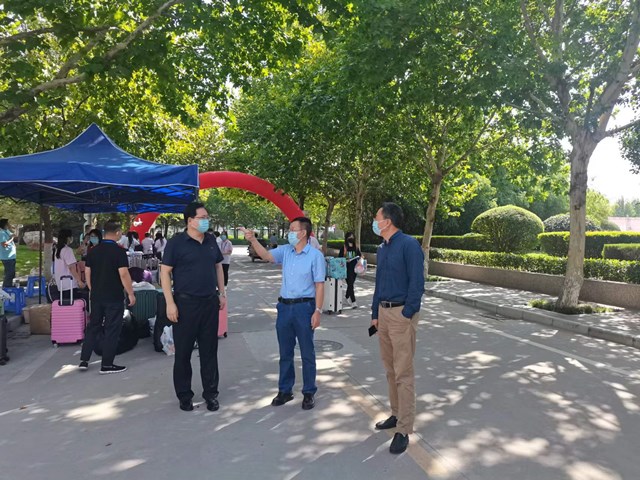 上午8时30分,校长姜寿山、校党委书记温锋、常务副校长黄新民、副校长李宗领、吴俊林及相关部门负责人亲临报到现场检查迎新工作,对现场工作人员及志愿者表示慰问,向新同学们送上亲切的问候并表示热烈的欢迎。在校东门入口处,校领导详细询问保卫处负责人新生报到期间门禁管理、疫情防控措施等情况,并强调要严格落实各项防疫措施和要求,严防疫情输入校园,确保校园安全。在巡查各个学院迎新接待点时,听取了学院负责人与学生志愿者对迎新工作的简要介绍,现场提出改进工作指导意见。