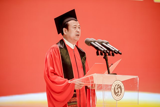 他祝福同学们积学储宝,读而不倦;全神贯注,业有所成;众声喧哗,不失己见;身在繁华,常念来路;步履四方,见多识广;以梦为马,不负韶华;此生尽兴,赤诚善良;无畏风雨,忠于自我;悠然雅静,松弛快乐;心有明镜,可辨事理;长路漫漫,笃行致远;知命不惧,愿迎万难!以青春之约,与时代同行,创造青春之伟业;锐意进取,努力拼搏,踔厉奋发,意气风发,彰显青春力量!