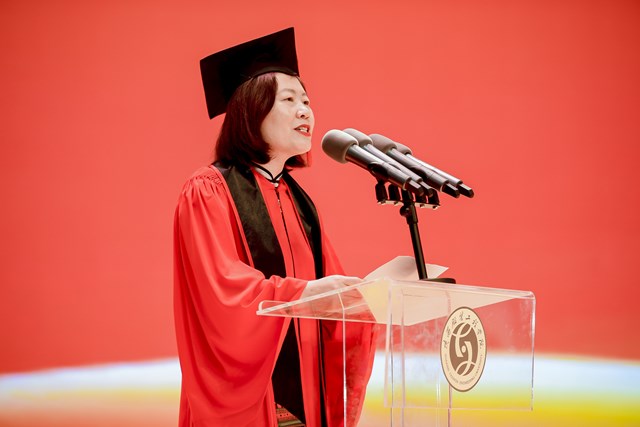 教师代表、省级师德标兵拓梅梅教授发言,她用自己的亲身经历、生活感悟和成长故事,表达了全体教师对毕业生们的深情期待,希望毕业生们能够在未来的道路上不断学习进步,成为社会的栋梁之才。