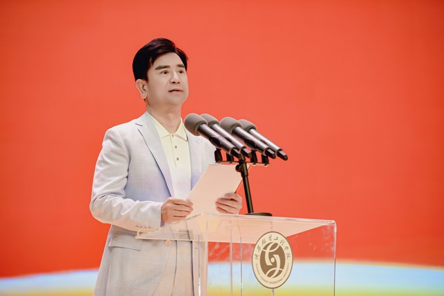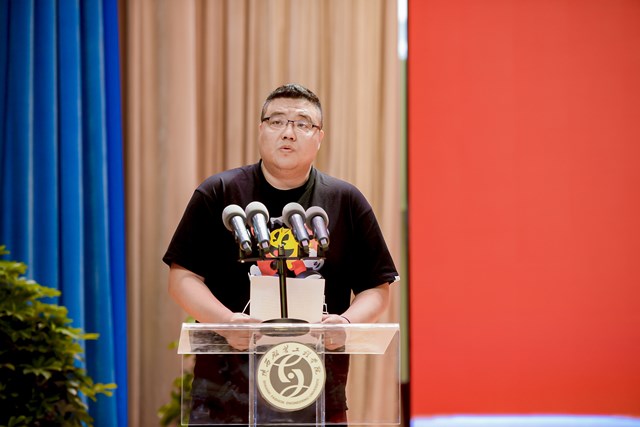 家长代表、艺术设计学院景榆鑫同学的父亲发言表达家长对学校的感激之情和祝福之意,希望毕业生们能够在未来的道路上一路顺风顺水,幸福美满,不忘父母养育之恩,常回家看看,常回学校看看。