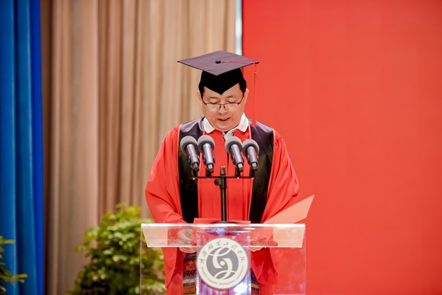 他代表董事会、校委会、党委会向顺利完成学业的同学们表示热烈祝贺,向莅临现场的学生家长及其亲友表示热烈欢迎,向悉心培养同学们的老师表示衷心的感谢!