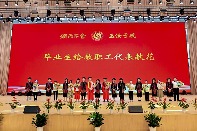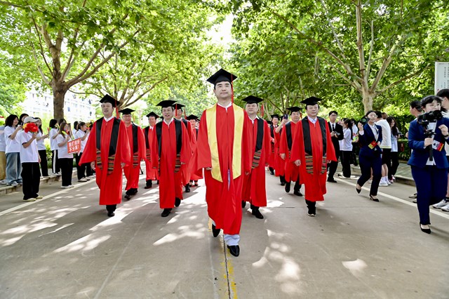 毕业典礼及学位授予仪式上,进行了庄重的迎权杖仪式。校党政领导和嘉宾为省级优秀毕业生和校级优秀毕业生颁发荣誉证书并合影留念。学位评定委员会委员给毕业生代表颁发毕业证、学位证、拨流苏,并合影留念。