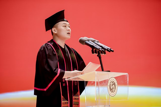 优秀毕业生代表、经济管理学院吉伟佳发言分享对大学生活的感悟,展望未来的美好前景。他代表全体毕业生表达对未来充满信心和无限期待,希望能够在未来的道路上勇敢追梦创造属于自己的精彩人生。