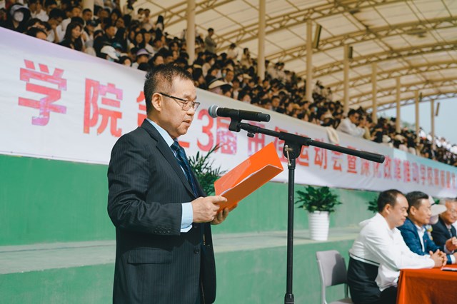 姜寿山号召全校师生,积极投身守护健康、强身健体、提高体质的活动中,五育并举,德智体美劳全面发展。希望全体运动员赛场上发扬“更快、更高、更强、更团结”的奥运精神,斗志昂扬、奋力拼博,赛出风格,突破自我,取得好成绩。希望全体裁判员秉公执守,严肃赛纪,认真履职,以身作则,保证运动会的公平公正性。