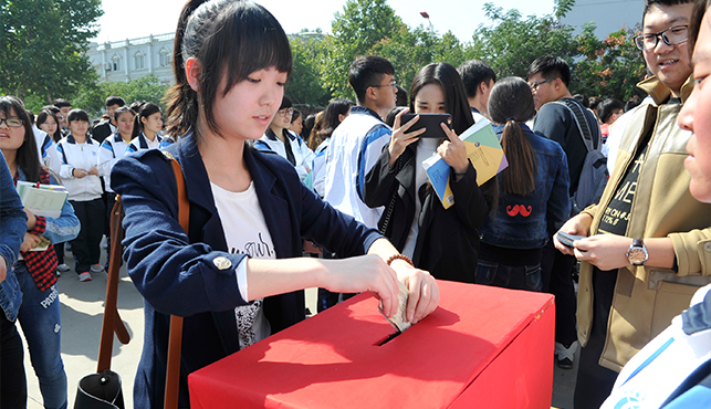 我校开展为贫困大学生捐款爱心活动10月17日中午,温暖的阳光洒满了校园。陕西服装工程学院开展爱心活动,为贫困大学生捐款。广大师生踊跃相应,为贫困学子奉献一份爱心。学校领导带头捐款。