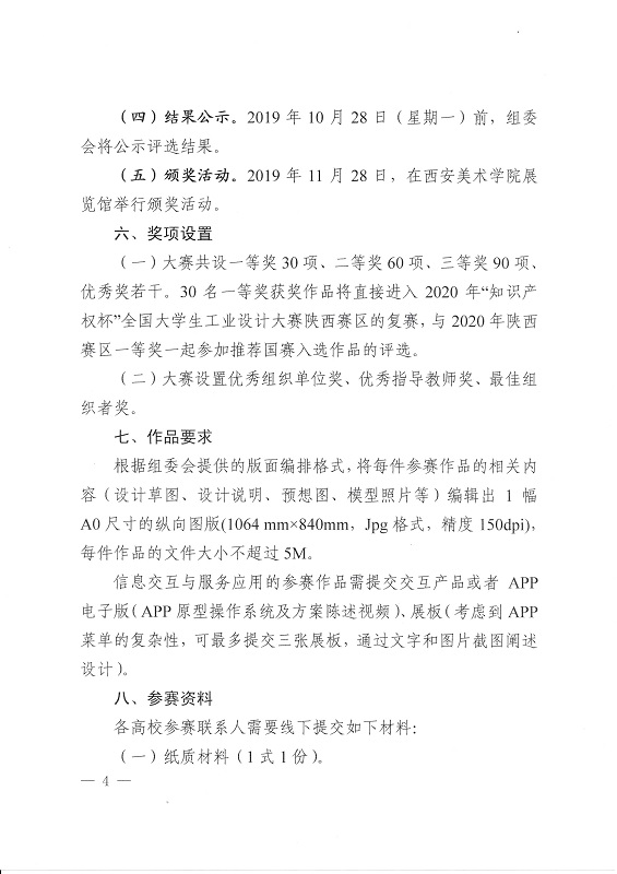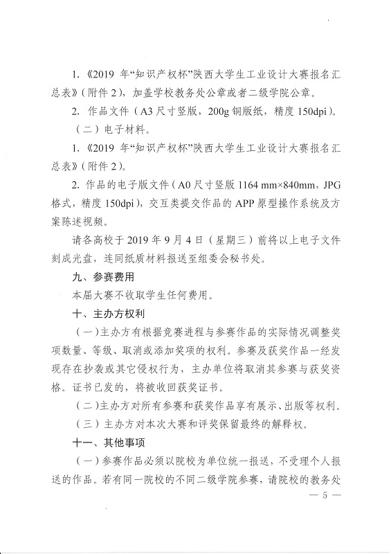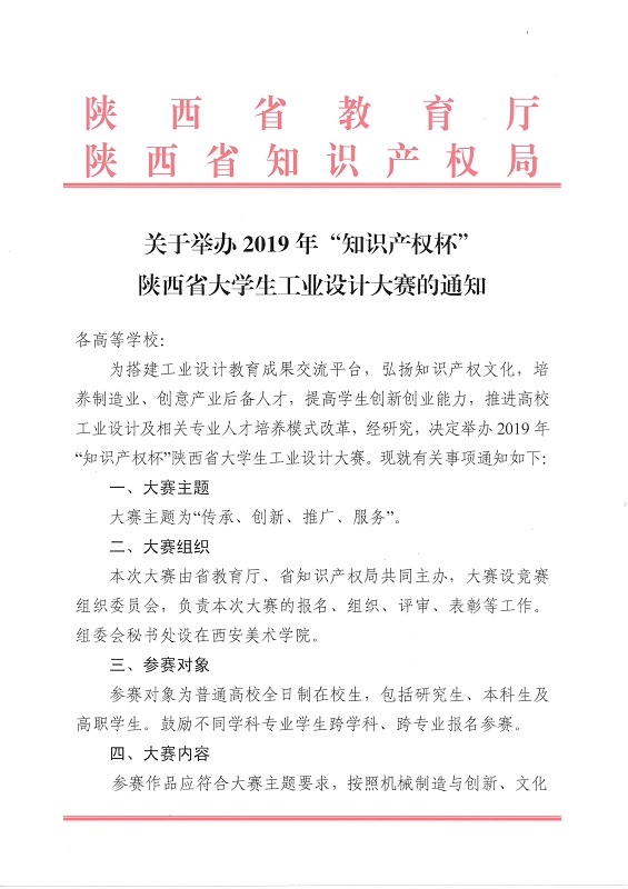 关于举办2019年“知识产权杯”陕西省大学生工业设计大赛的通知