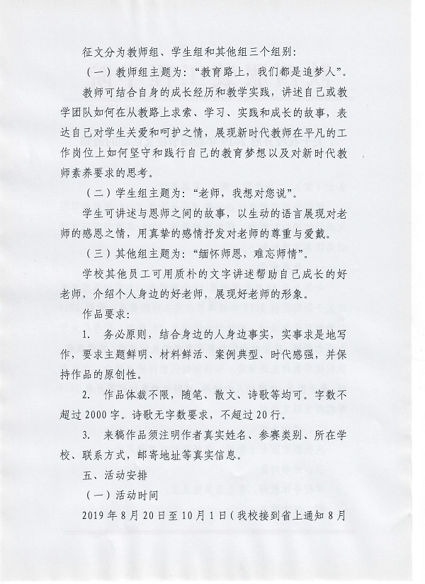关于开展全校教职工2019年度评选优秀教师优秀教育工作者的通知