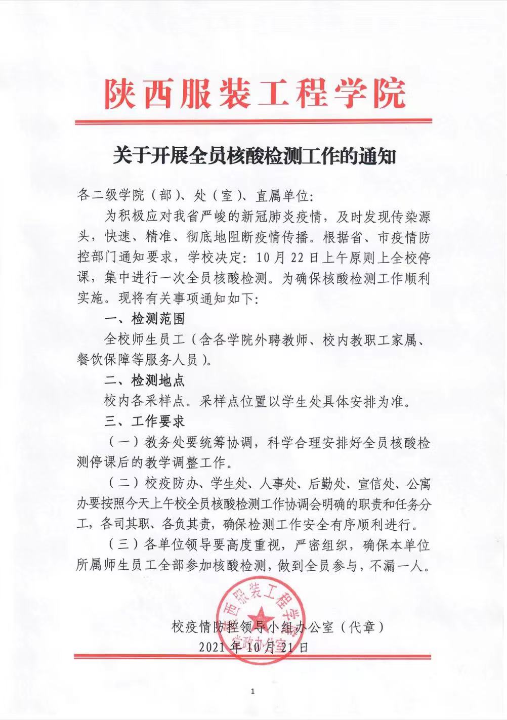 关于开展全员核酸检测工作的通知