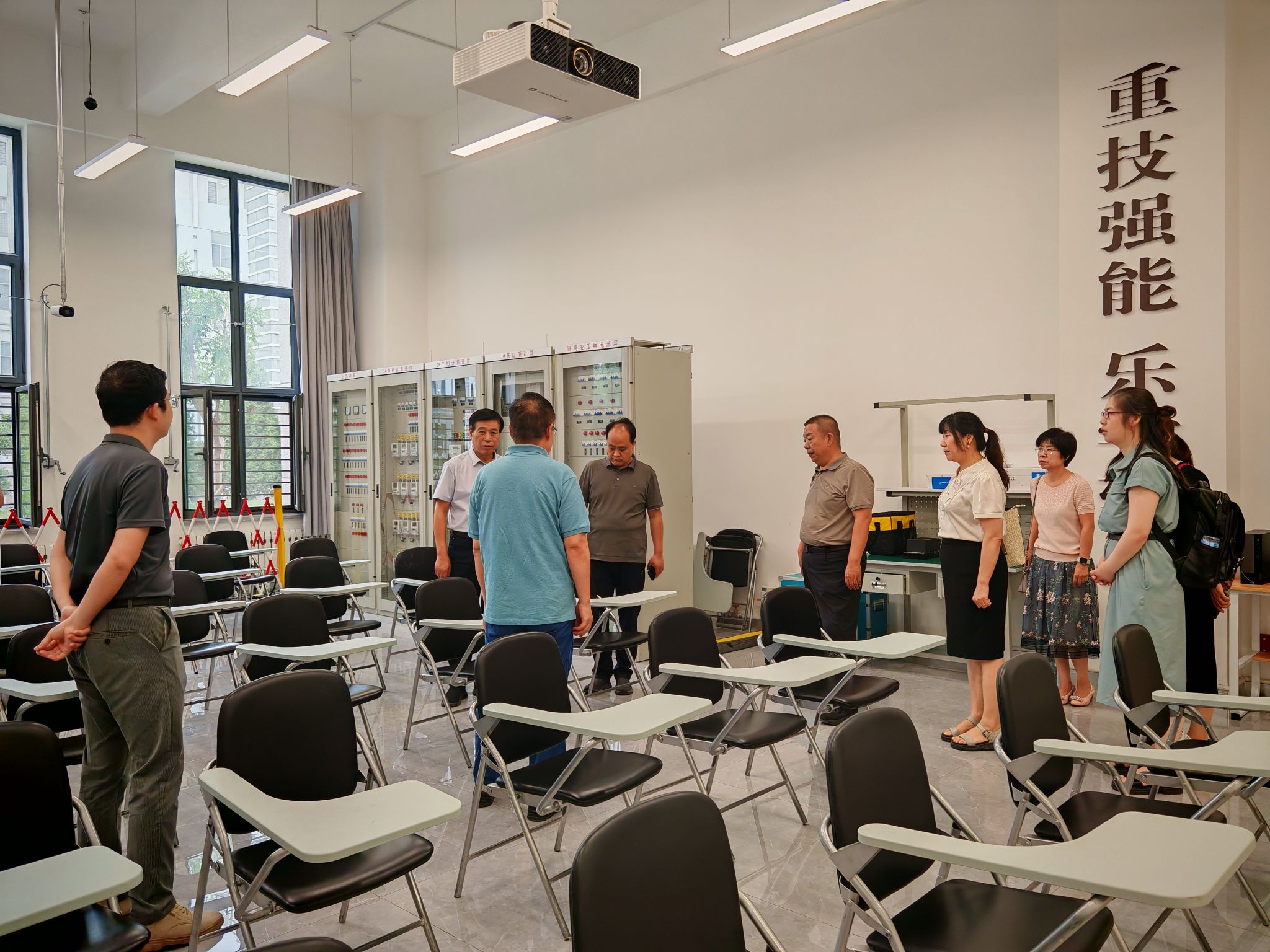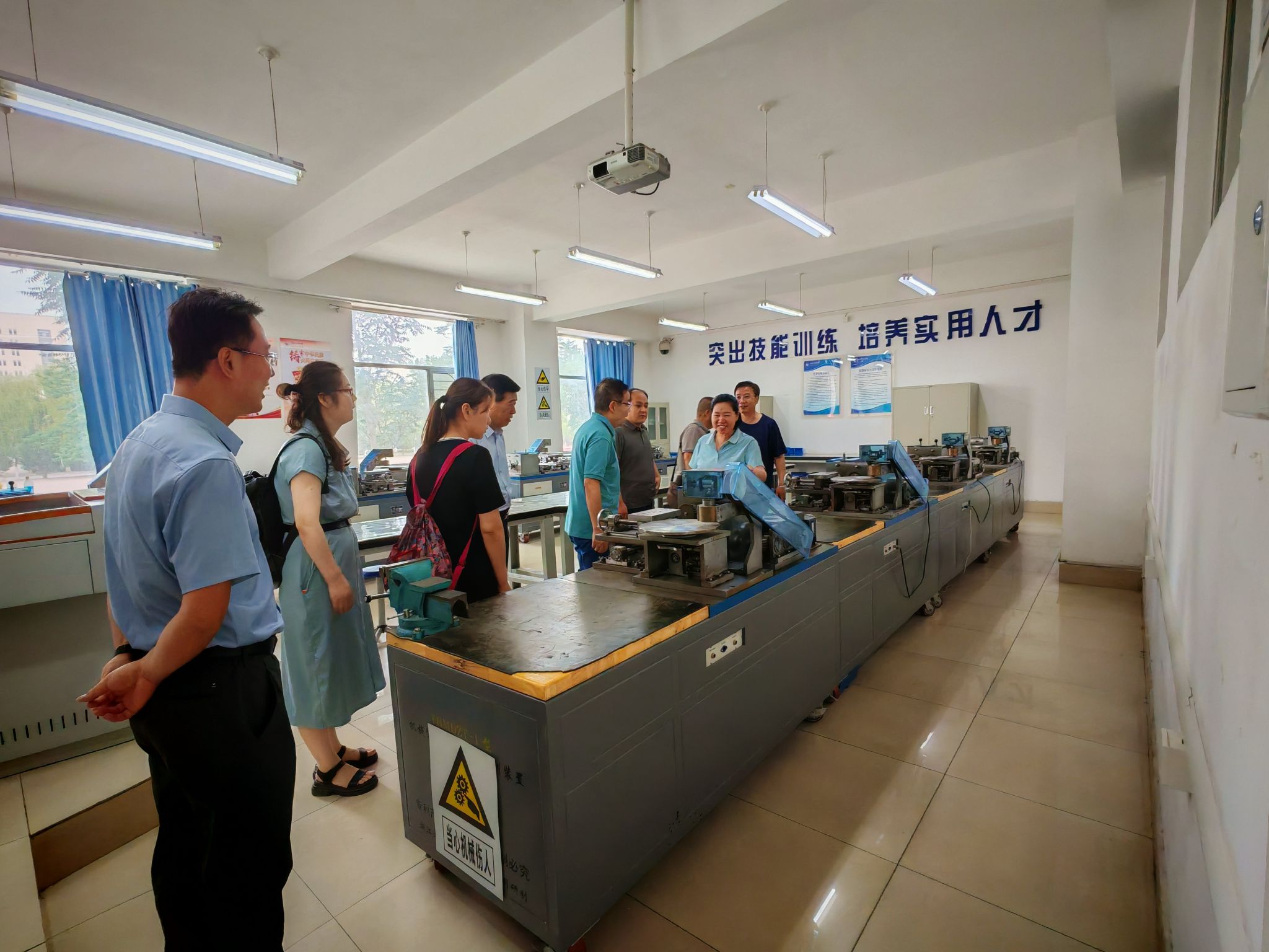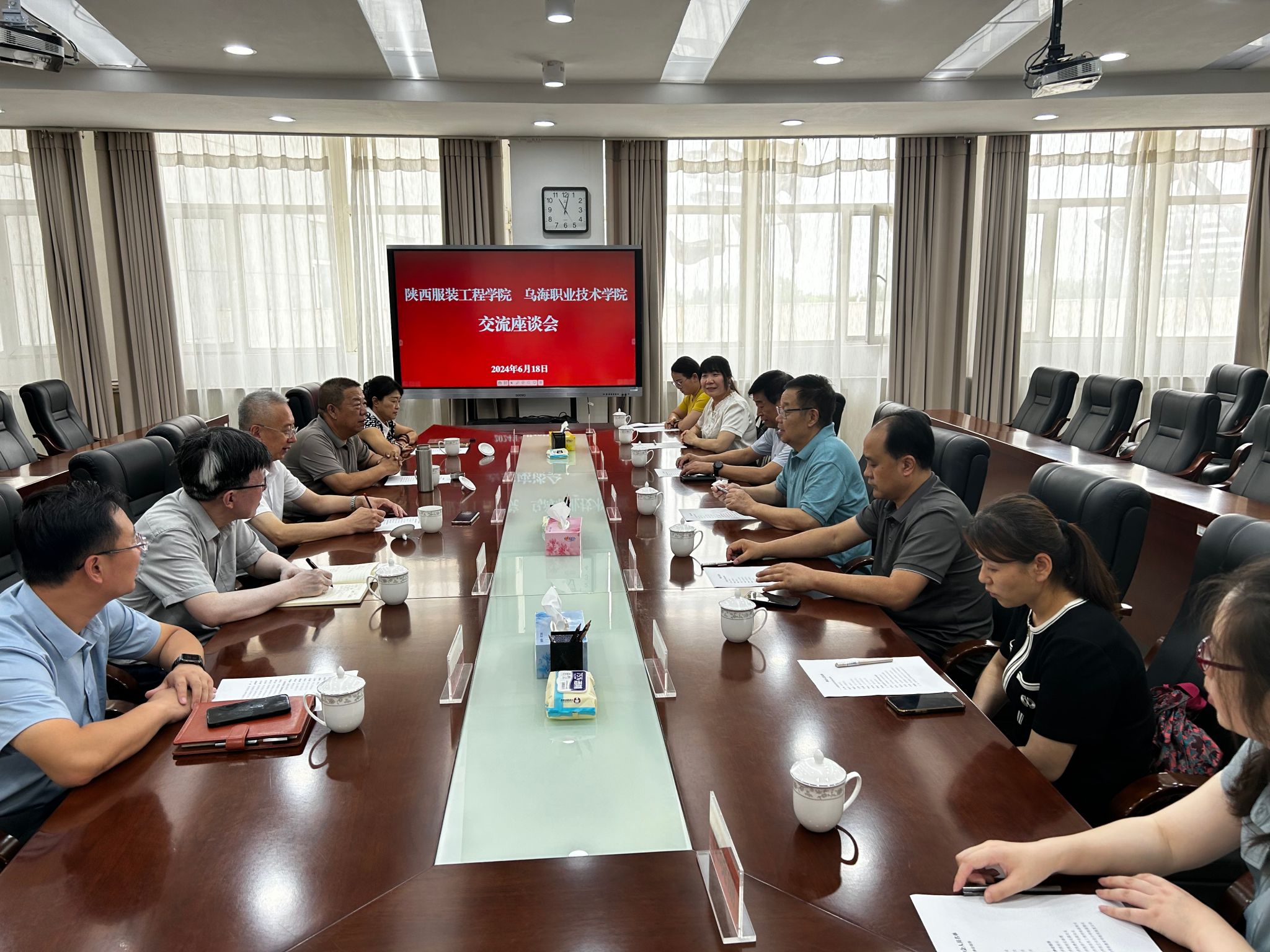 陕服新闻网讯(康晓婷)6月18日,校长姜寿山带队,校长助理翟岁兵、教务处副处长赵云龙、资产处副处长吴亚红、艺术设计学院副院长任晓丽、信息工程学院副院长付向艳、教育学院实验室主任王冰一行七人,赴“乌海职业技术学院”学习实验室、实训室建设经验。