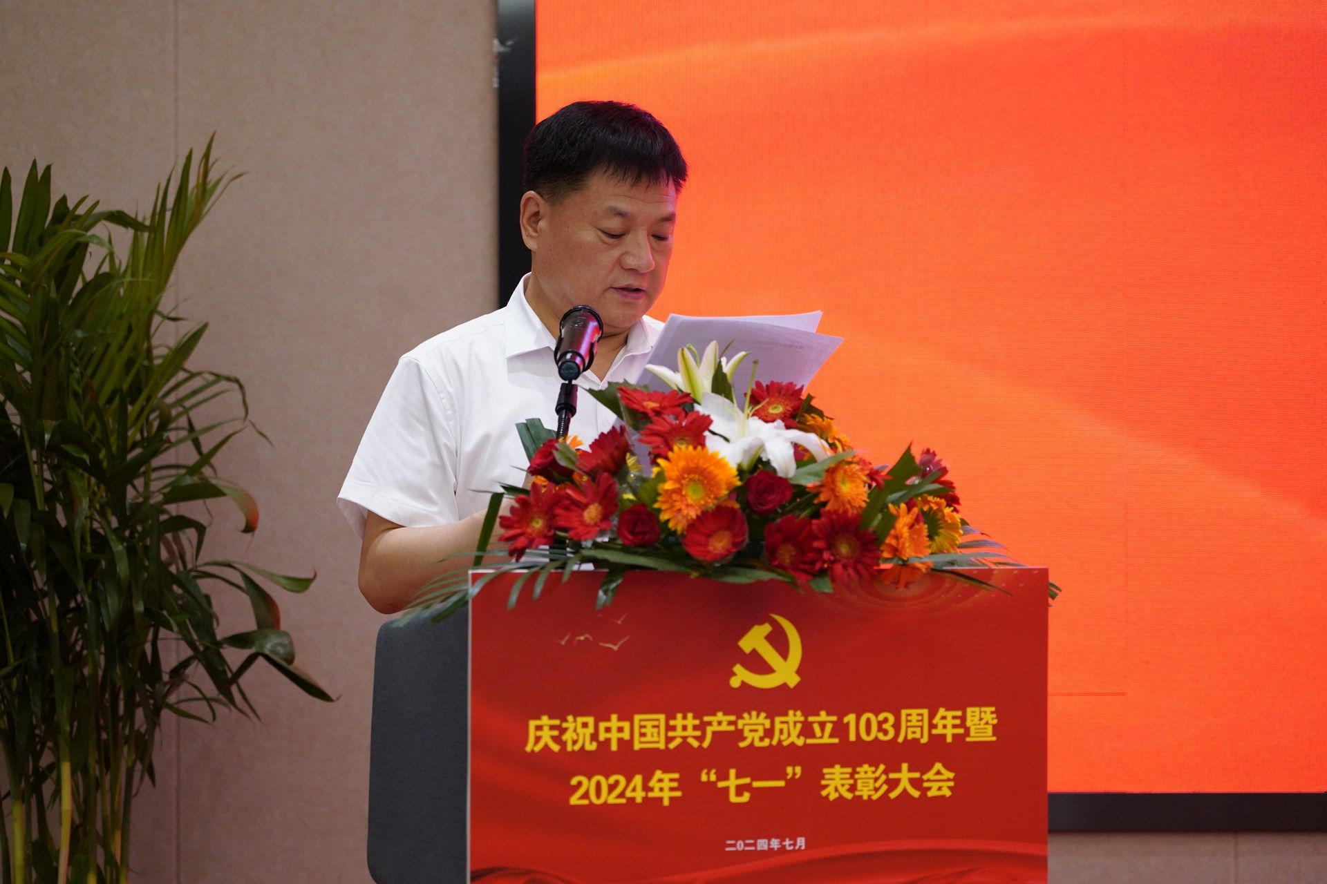 校党委书记王岗发表了讲话。王岗指出,今天是中国共产党103周年华诞,我们在这里举行庆祝中国共产党成立103周年暨2024年“七一”表彰会,表彰为学校发展作出积极贡献的先进基层党组织、优秀共产党员、优秀党务工作者、优秀学生思想政治教育工作者。重温党的光辉历程,缅怀革命先烈丰功伟绩,弘扬伟大建党精神,动员和激励全校党员干部和师生员工坚定信念、践行宗旨、踔厉奋发、团结一心,为推进学校高质量发展再创佳绩!