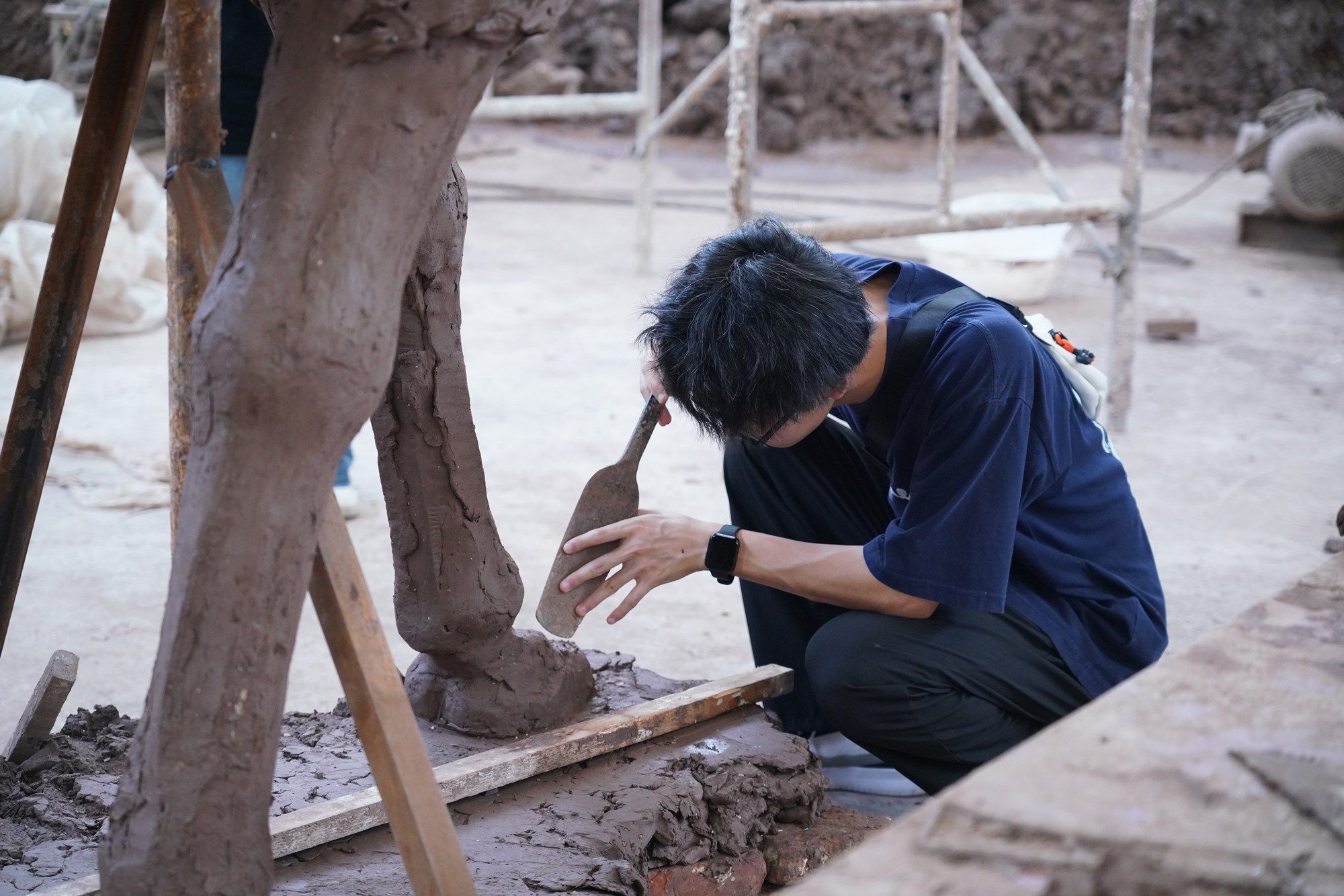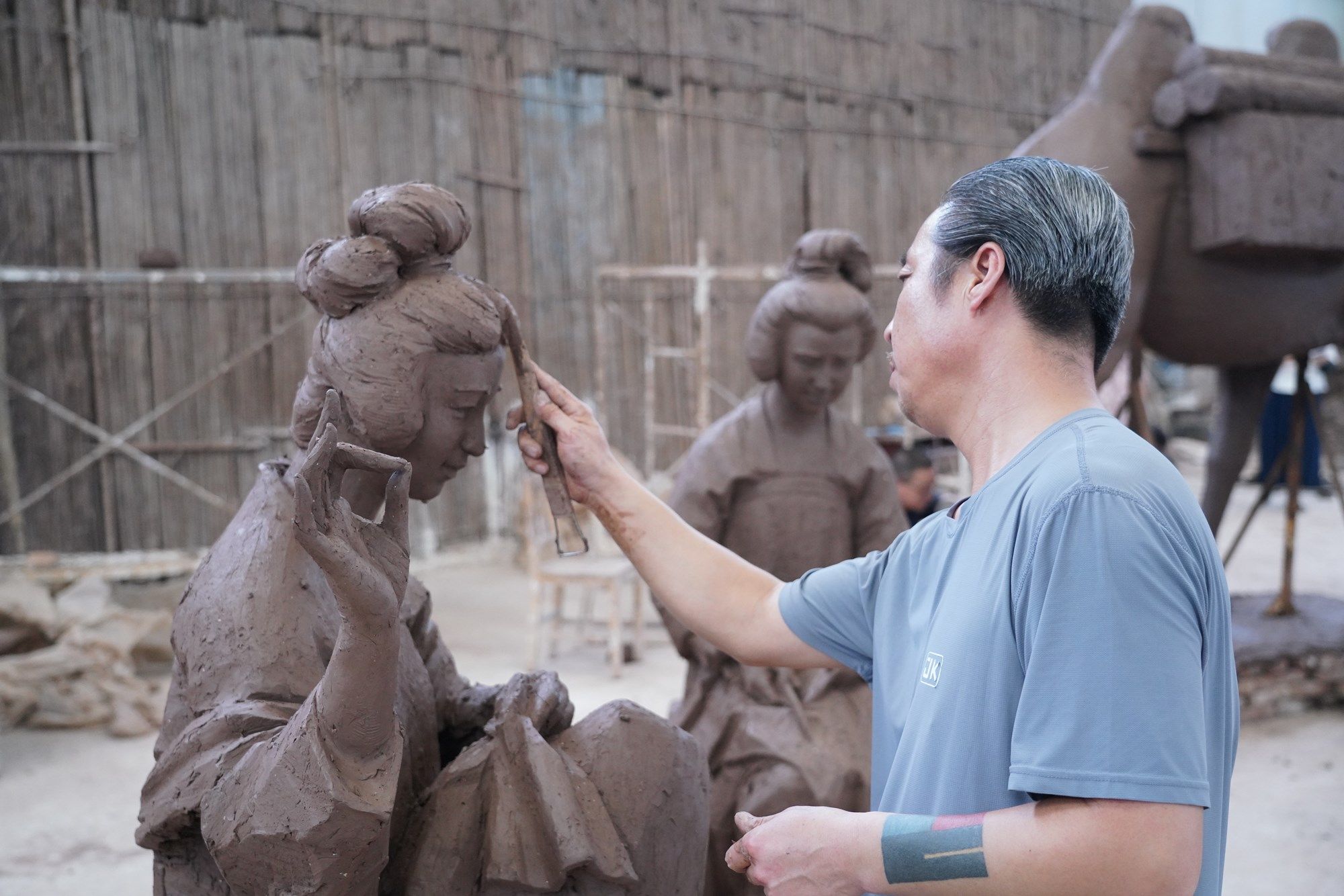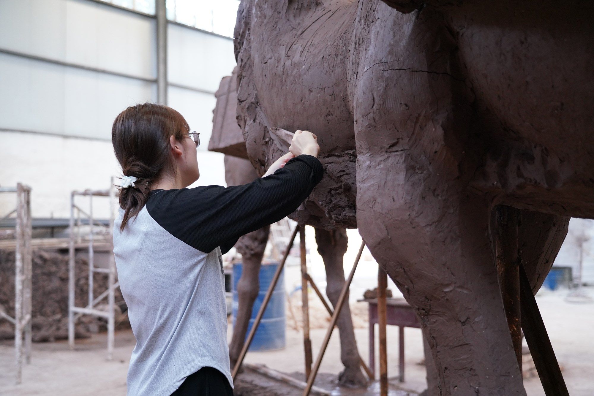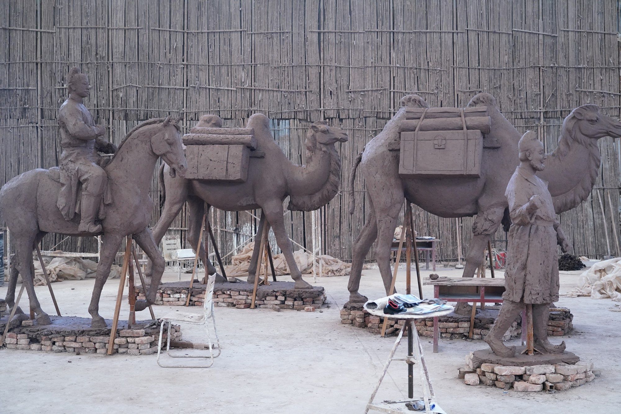 丝路循迹主题雕塑作为我校校庆三十周年标志性校园文化景观工程,备受瞩目。项目设计人由我校艺术设计学院薛富成副教授、王妍老师担纲领衔,艺术设计学院相关师生全程参与制作,作为相关专业实践课教学、科研攻关项目。在学校和制作单位的努力下,项目进展顺利,取得阶段性成果,已经有模有样。