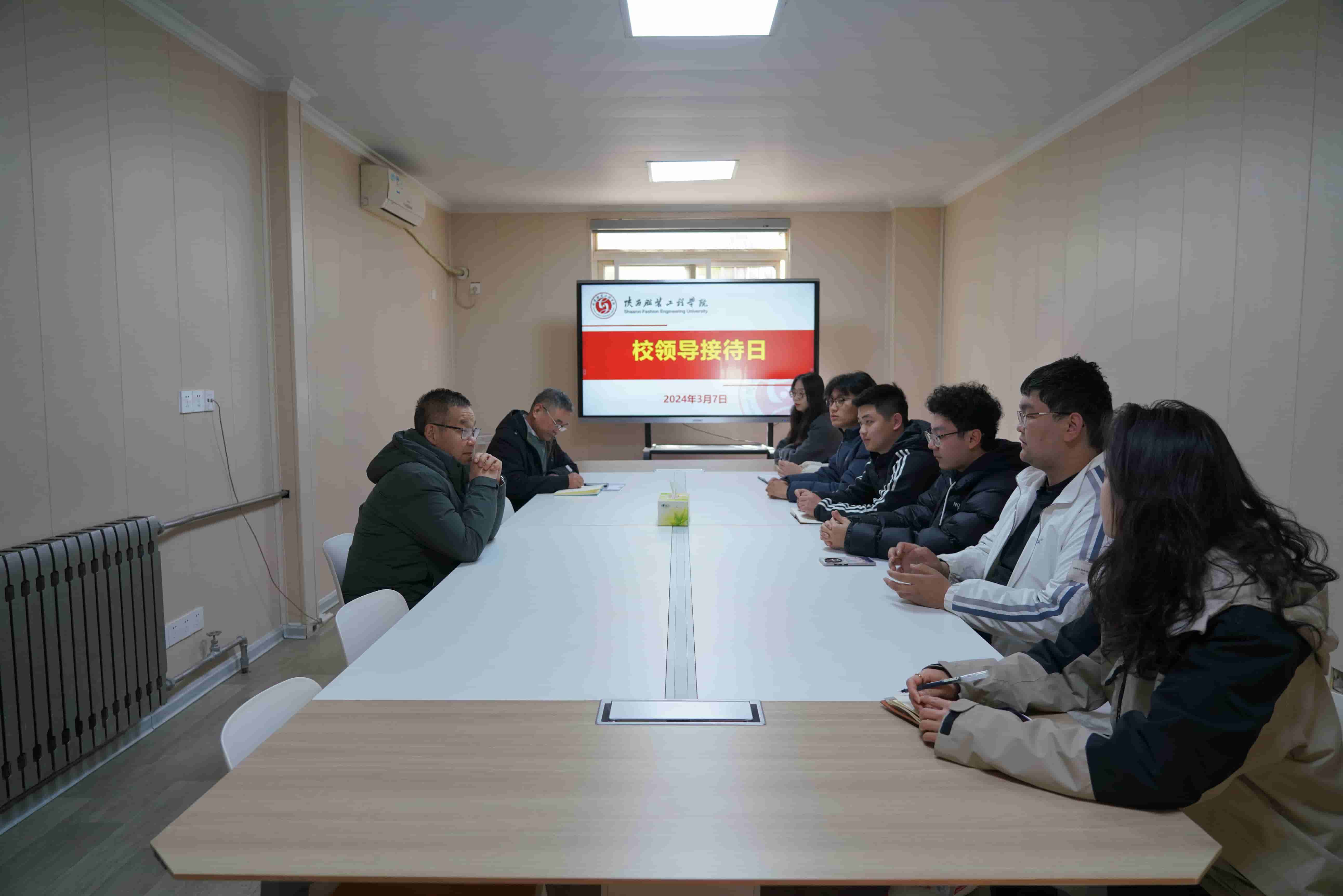 陕服新闻网讯(党政办)3月7日下午,“校长接待日”活动在行政楼第一会议室如期举行,校长姜寿山、校长助理罗文谦出席并与学生代表面对面交流。