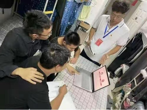 陕服新闻网讯(郭亭亭)6月15日,学生钱杏、学生康航、学生付格格等组成的党史宣讲团在6号楼521宿舍、10号楼402宿舍及6号楼519宿舍进行宣讲。本次活动的主题是“四史教育进公寓、红色文化育新人”。