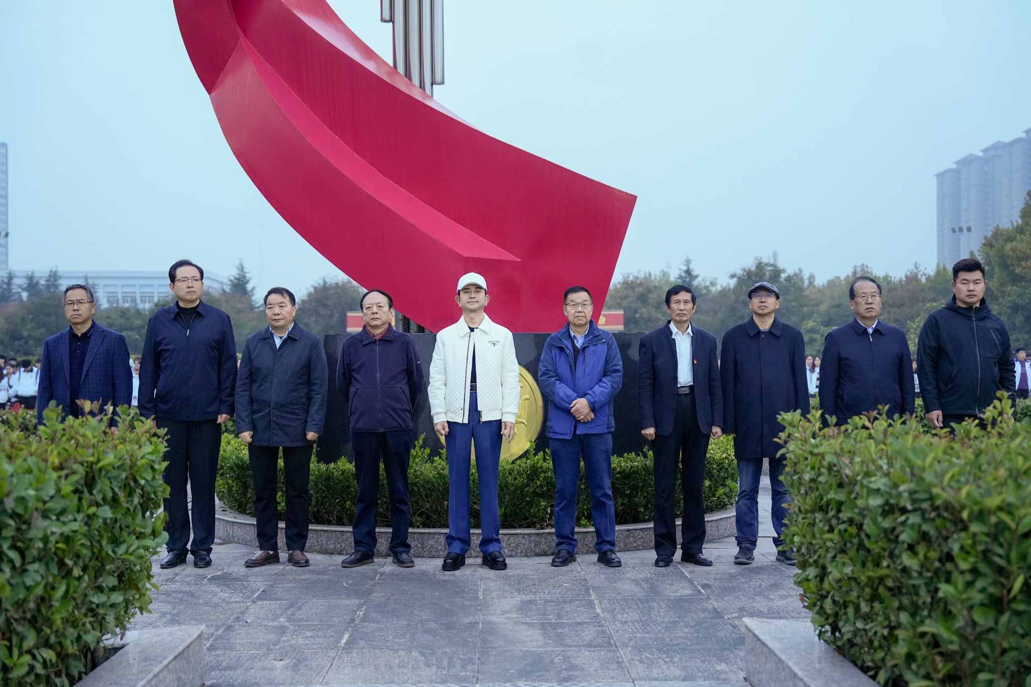 陕服新闻网讯(李文斌)11月4日清晨,我校在和谐广场举行11月升国旗仪式,董事长吕明博士、副董事长吕超、校长姜寿山、党委书记王岗、常务副校长黄新民、副校长吴俊林、潘庆才、唐明晰、刘运、党委副书记刘继兵、总会计师王晓民、校长助理罗文谦、李钊及全体师生参加。