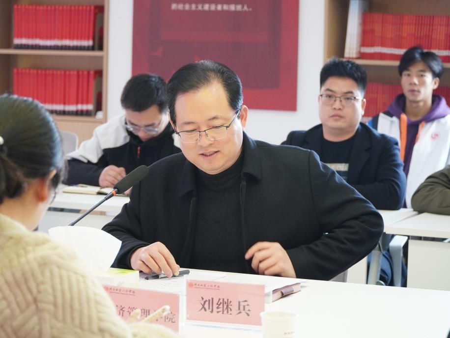 刘继兵讲话时,首先对参评班级在党团组织建设、思想教育引领、学风建设成效、社会实践服务以及学生综合素质表现等方面的成绩给予了高度评价。他指出,今天的评审会,不仅是一次对上学年班级建设工作成果的总结展示,更是一次班级凝聚力、积极向上学习氛围、丰富多彩班级活动、同学们之间深厚友谊的生动诠释,为全校深化学生思想政治教育,优化班级建设树立了标杆,提供了经验,值得认真学习和借鉴。他代表学校向获评“十佳”的班级和辛勤工作在一线的辅导员表示祝贺和感谢。