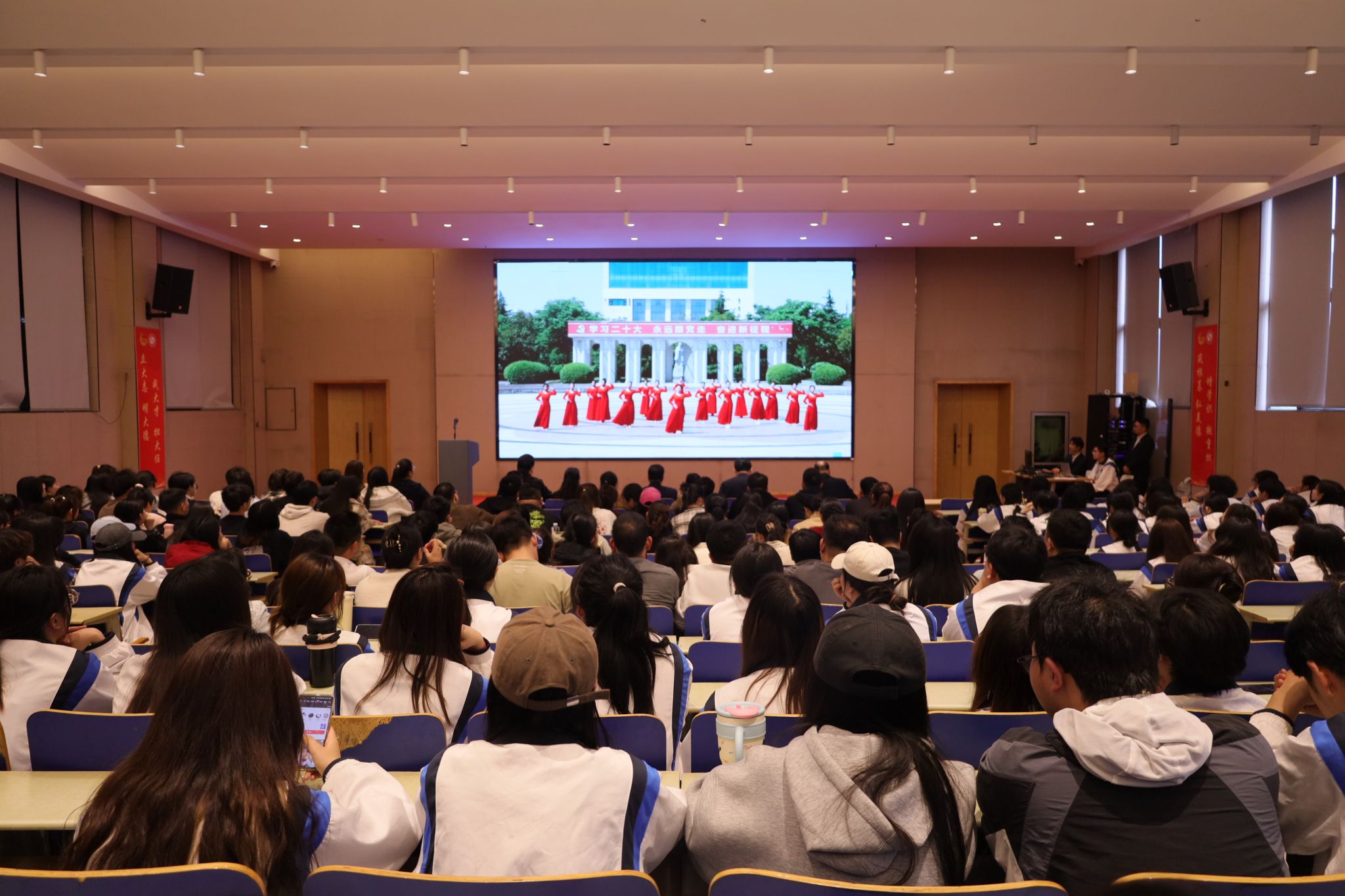 与会人员观看了我校第九届陕西省高校百家慕课手语操金奖作品《和你一样》。