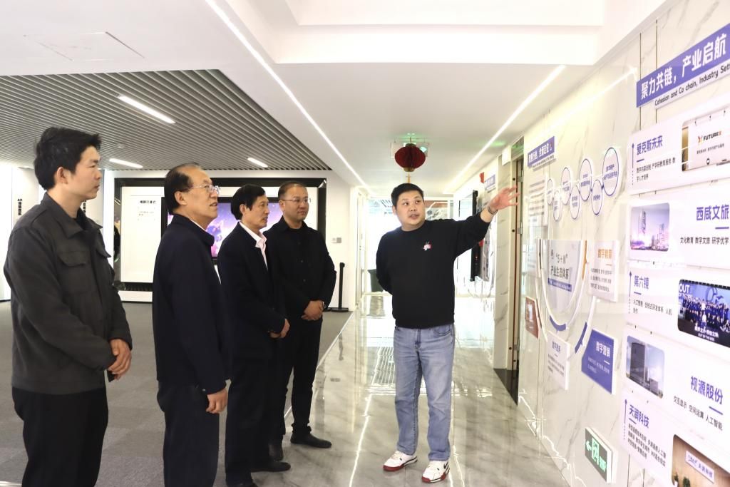 陕服新闻网讯(艺术设计学院)为确保本科教学评估顺利开展,推进校企合作实践教学基地建设,提升实践教学综合水平,3月25日下午,副校长潘庆才、校长助理罗文谦一行到我院校企合作实践基地西安爱克斯未来文化科技有限公司考察调研。艺术设计学院执行院长时晓楠、实验室主任庞理科等随同调研。