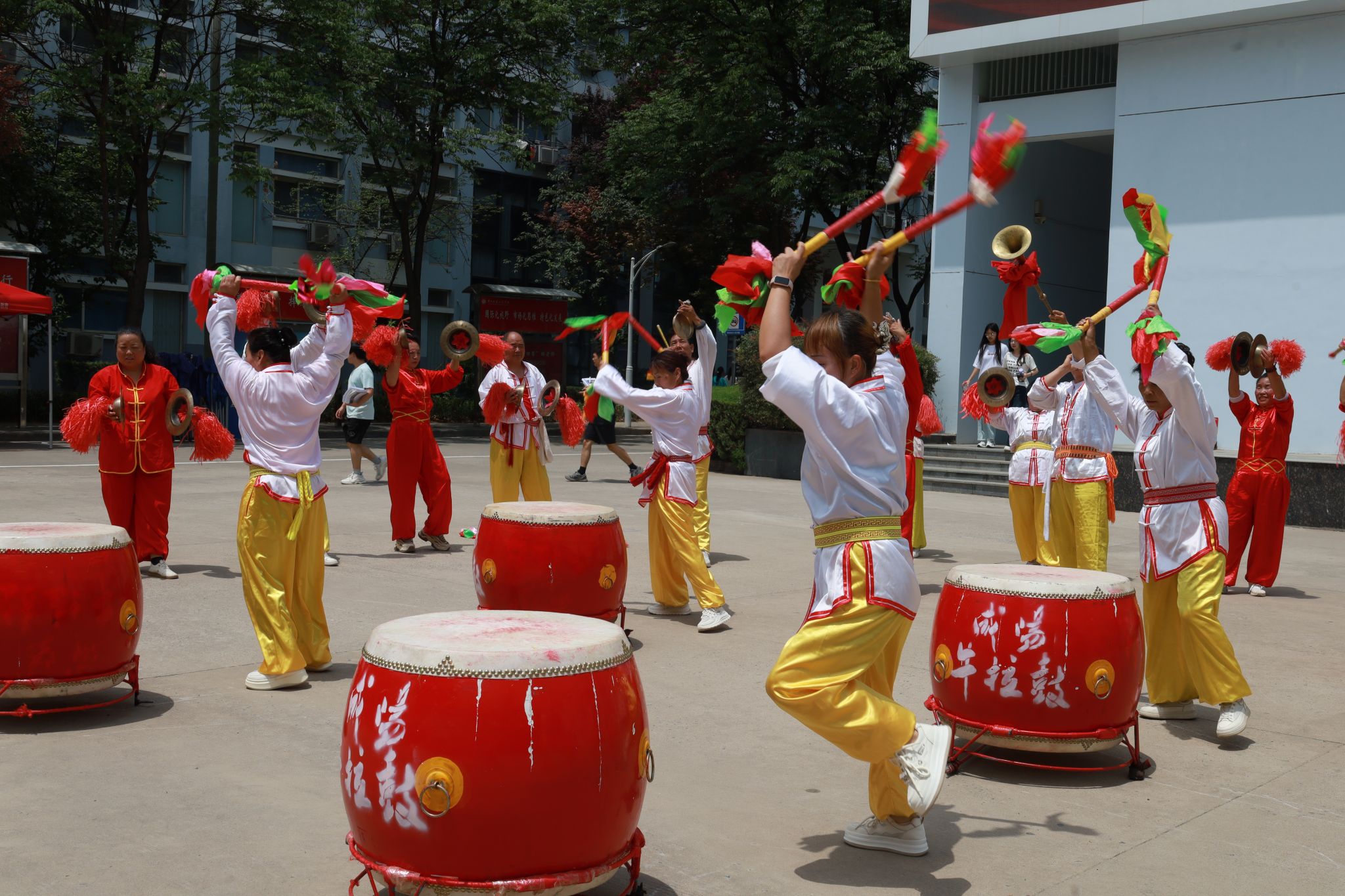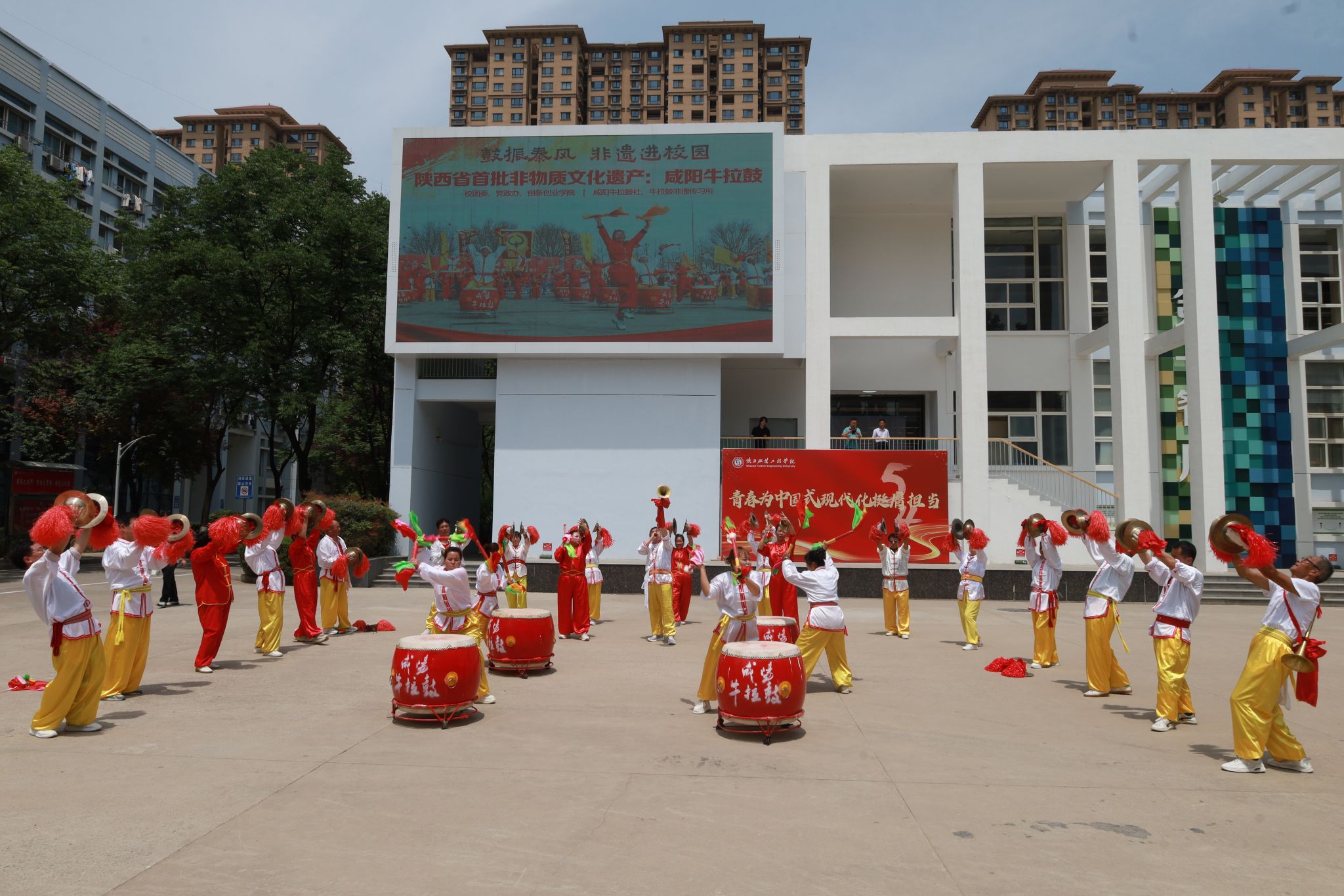 陕服新闻网讯(李文斌)为了弘扬非遗文化,将非遗项目牛拉鼓的独特魅力展现给更多的人,促进牛拉鼓的传承与发展,5月15日,咸阳牛拉鼓锣鼓队走进我校宣传牛拉鼓非遗文化。