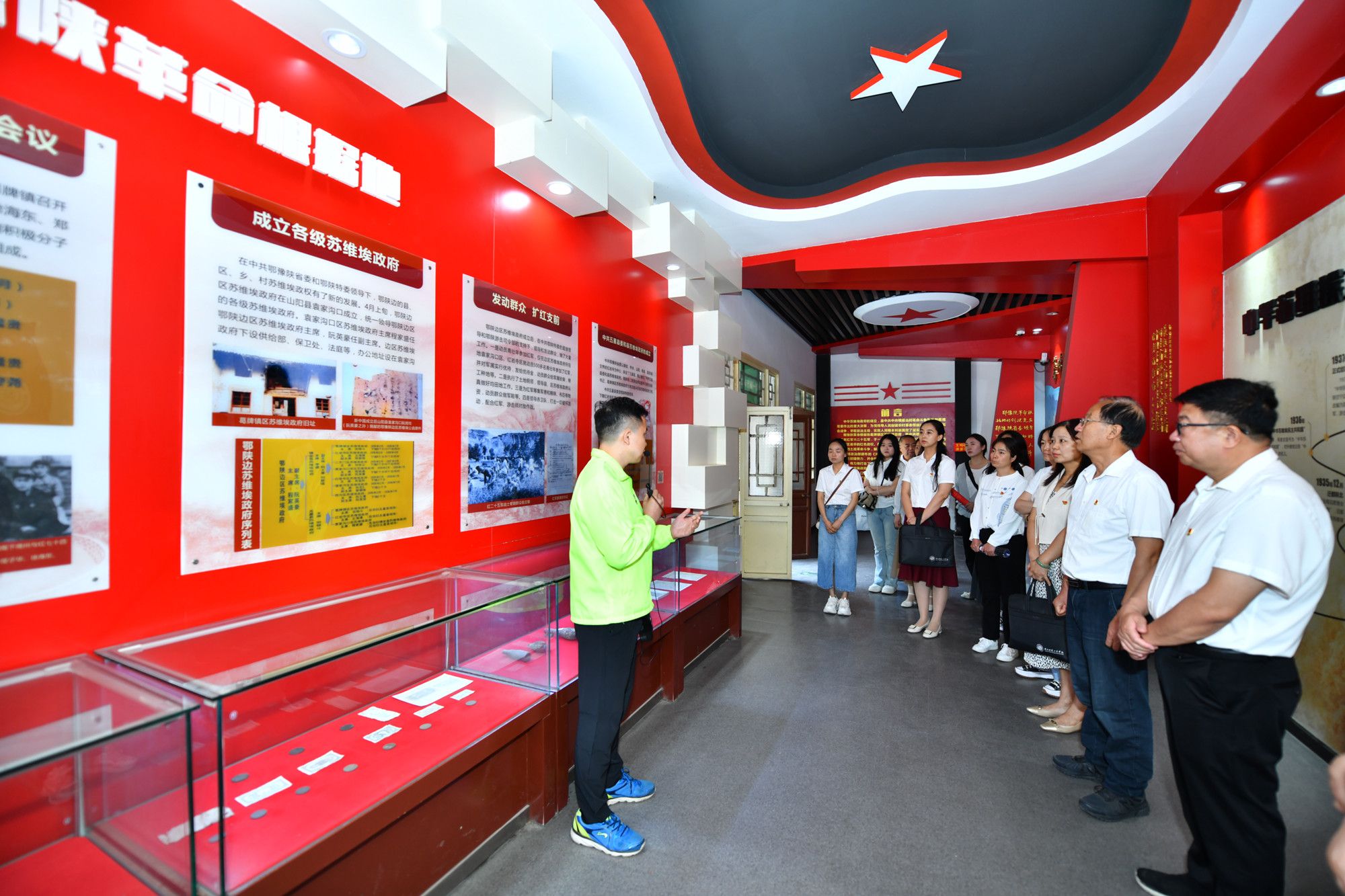 “葛牌镇区苏维埃政府纪念馆是在原葛牌镇区苏维埃政府旧址上仿原结构修建的纪念馆。”纪念馆占地800平方米,展出资料照片400余幅。随着讲解员声情并茂的解说,大家依次参观了纪念馆3个展馆和红军广场,通过观看馆内文献资料、历史图片、珍贵文物等史料,了解葛牌镇区苏维埃政府纪念馆的设立及革命历程,铜火盆、松油灯、红军鞋,战士们作战用的大刀、步枪纪念馆内的一件件革命文物、一张张历史照片,向人们诉说着腥风血雨、壮怀激烈的战争年代中的故事。在这里,大家仿佛能嗅到战场的硝烟、听到冲锋的呐喊。烽火岁月虽已渐行渐远,而葛牌镇大量的革命遗址、遗迹,让这片红色土地在和平年代仍闪烁着不朽的光芒。