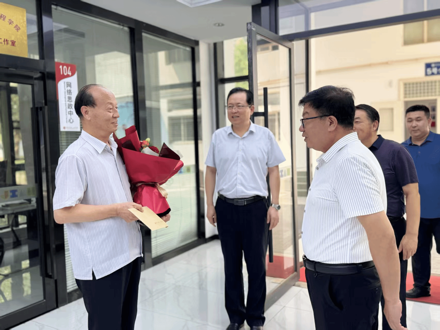 走访中,校党委领导为张维峰、吴鑫同志送上鲜花和慰问金,感谢他们为党的教育事业和在学校基层党建、学生教育管理、安全稳定工作方面所作出的贡献,对他们身上彰显的坚定理想信念、无私奉献精神、顽强意志品质、优良工作作风给予高度评价。在亲切交谈中详细询问他们的工作情况和身体、生活状况,认真倾听他们为学校建设发展倾心尽力、担当作为、敬业奉献的奋斗经历,共同探讨基层党建提质增效、增强学生政治思想教育实效、筑牢校园安全稳定工作防线的新思路新举措,共同展望学校建设发展的美好未来。