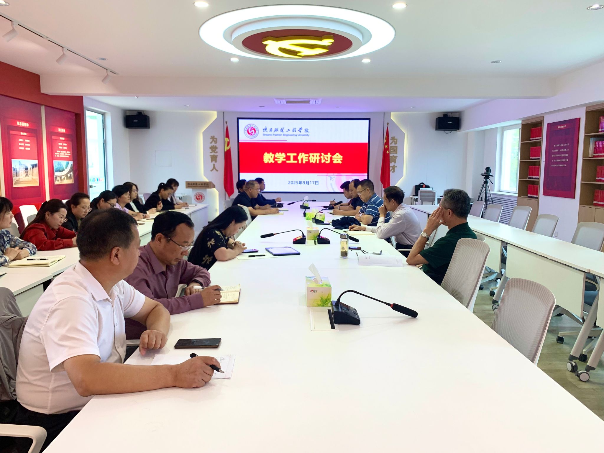 陕服新闻网讯(刘学艺)为进一步推动教学改革、提升人才培养质量,推动“招生—培养—就业”一体化联动。2025年9月17日下午,我校在行政楼三楼会议室召开教学改革工作研讨会议。校长姜寿山、副校长潘庆才、校长助理翟岁兵、李钊,各二级学院院长、执行院长、主管教学副院长、院长助理及教务处、人事处等相关部门负责人参会,会议就教育教学改革、师资队伍建设、校企合作、招生就业等重点工作展开深入研讨。会议由姜寿山主持。