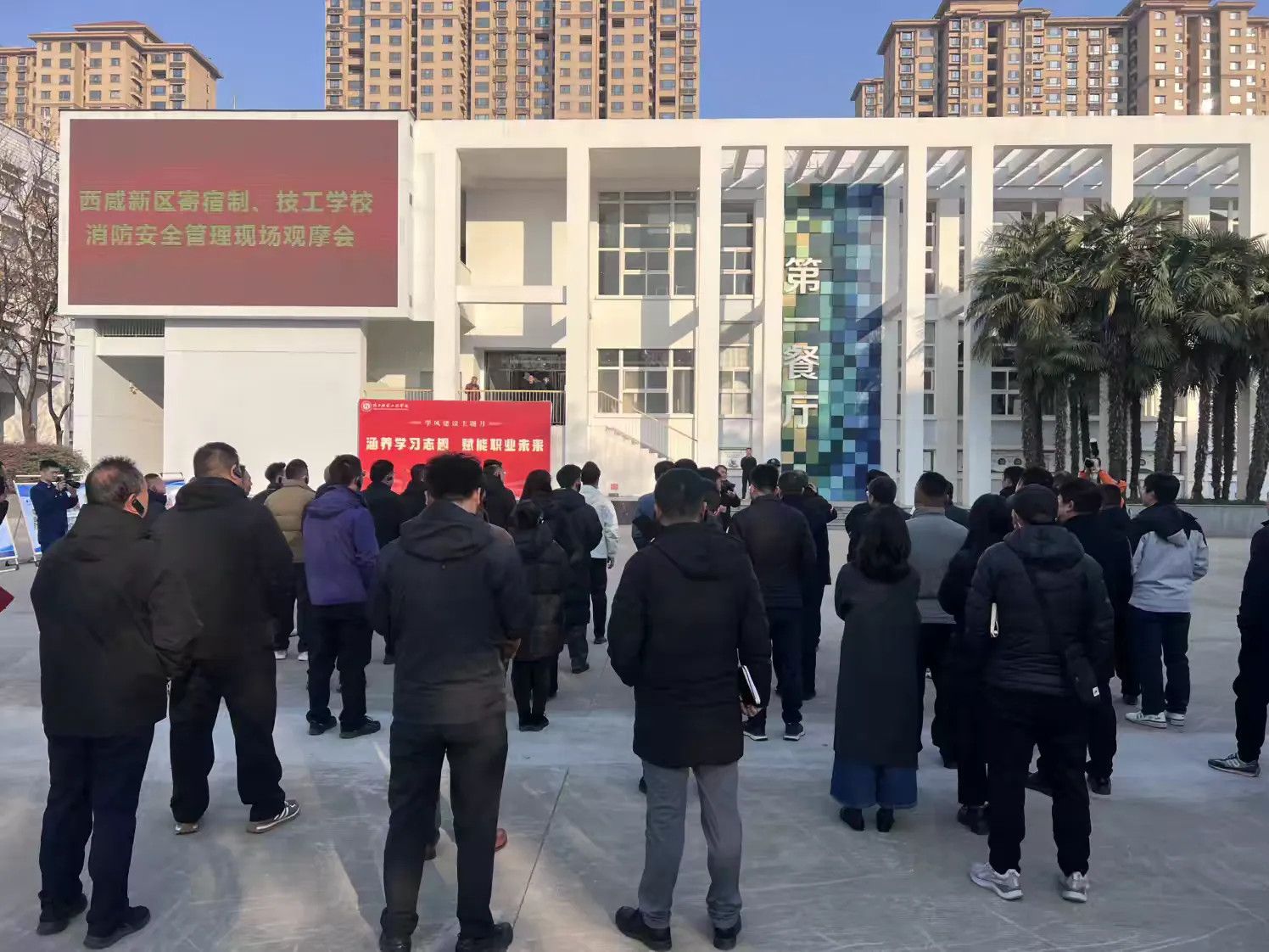 陕服新闻网讯(李文斌)12月5日,西咸新区学校消防安全管理现场会在我校召开。西咸新区消防救援支队教育体育局、社会事业服务局共同举办此次会议,旨在全面加强和规范全区学校消防安全管理工作,特别是校内 宿舍消防安全管理,切实保障广大师生生命财产安全。西咸新区党工委委员、管委会副主任张渭;西咸新区教育体育局、社会事业服务局、消防救援支队相关负责同志;各新城工作部业务负责同志及全区27家寄宿制学校、11家技工院校代表参加会议。